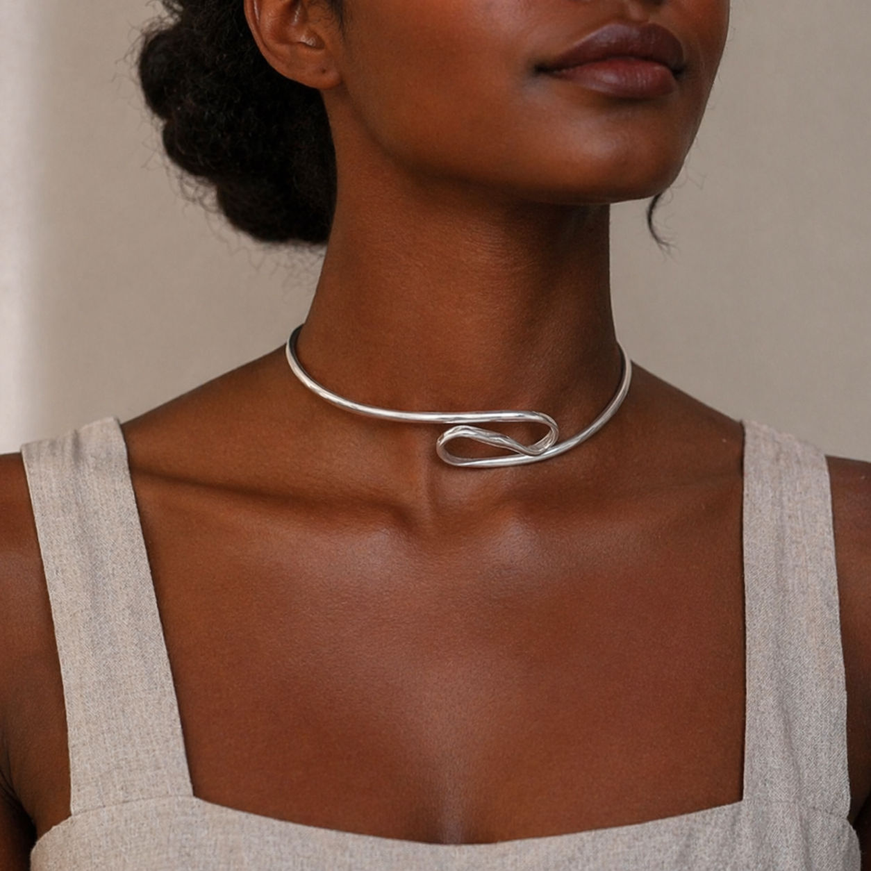 - Samlerens notat: Domi-halskjedet er en hyllest til organisk bevegelse. Den håndkrøllede silhuetten etterligner de uanstrengte kurvene som finnes i naturen, gjenskapt med de rene, bevisste linjene fra skandinavisk minimalisme.