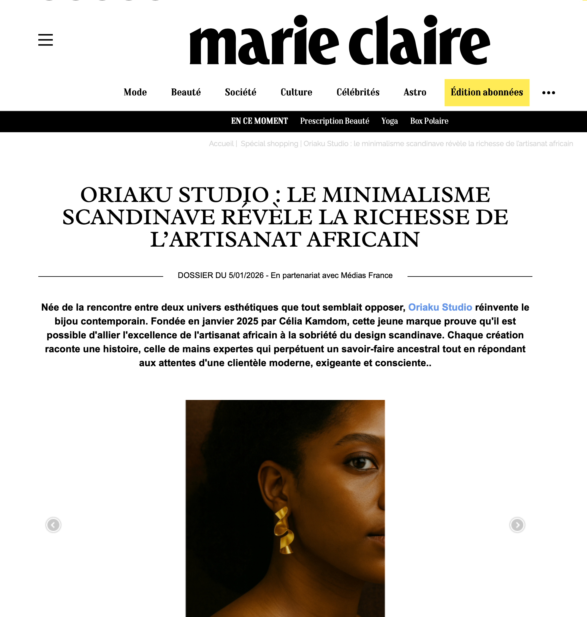 I am Celia, Founder and Creative Director of ORIAKU. I was born and raised in Paris by a single African mother who was a seemstress. I grew up seeing her draw and make clothes for big French designers. She is the reason why the "small hands" behind the glamour are so important to me.