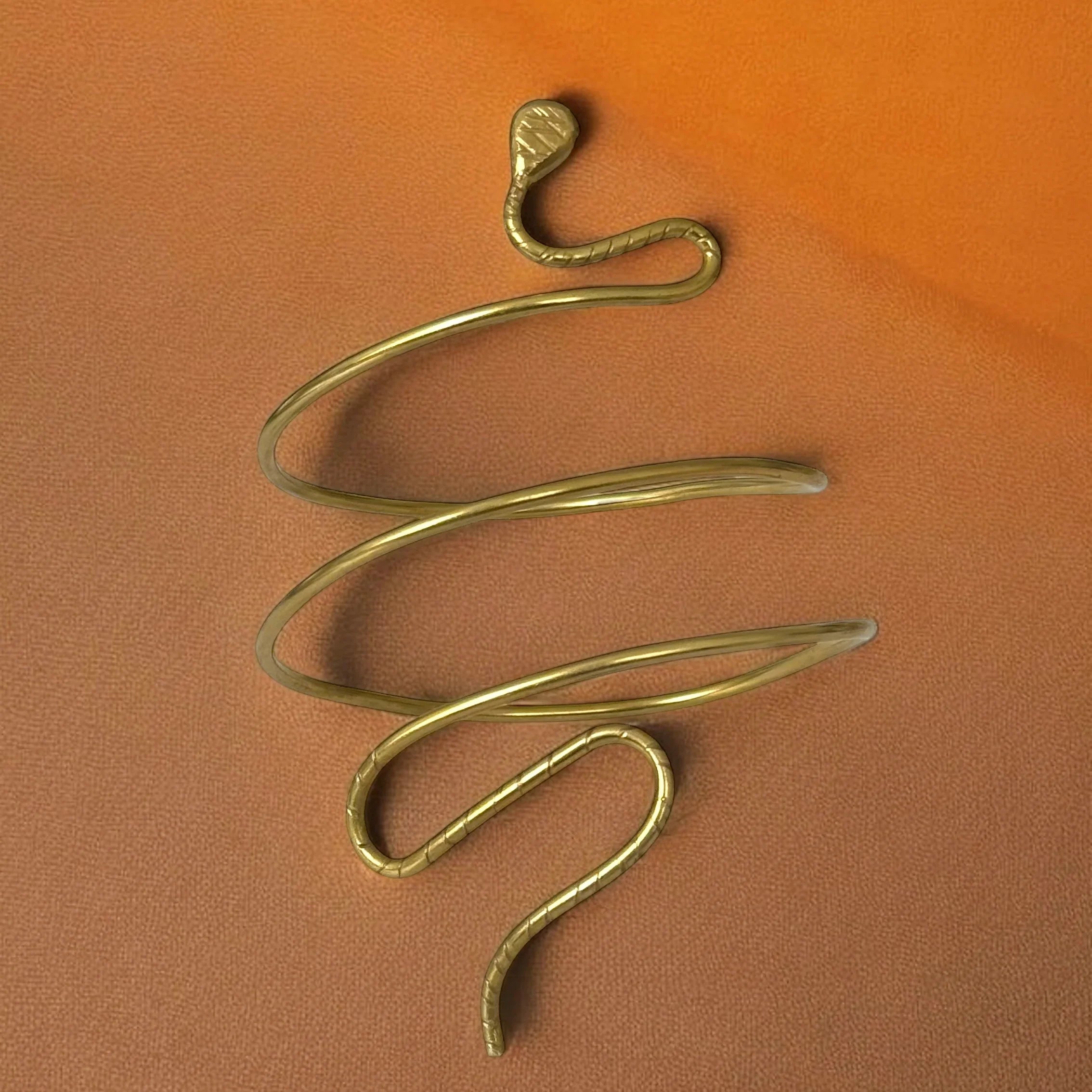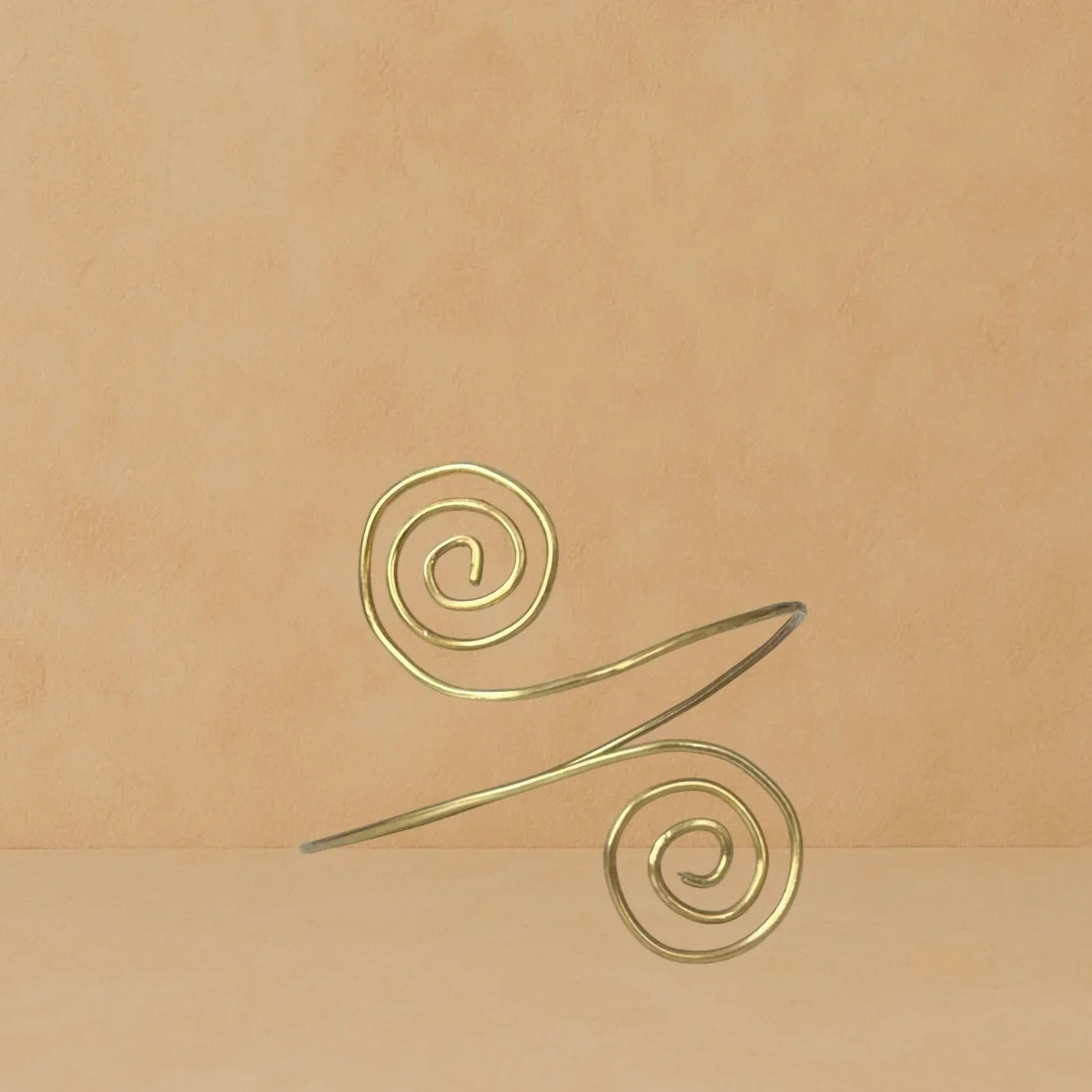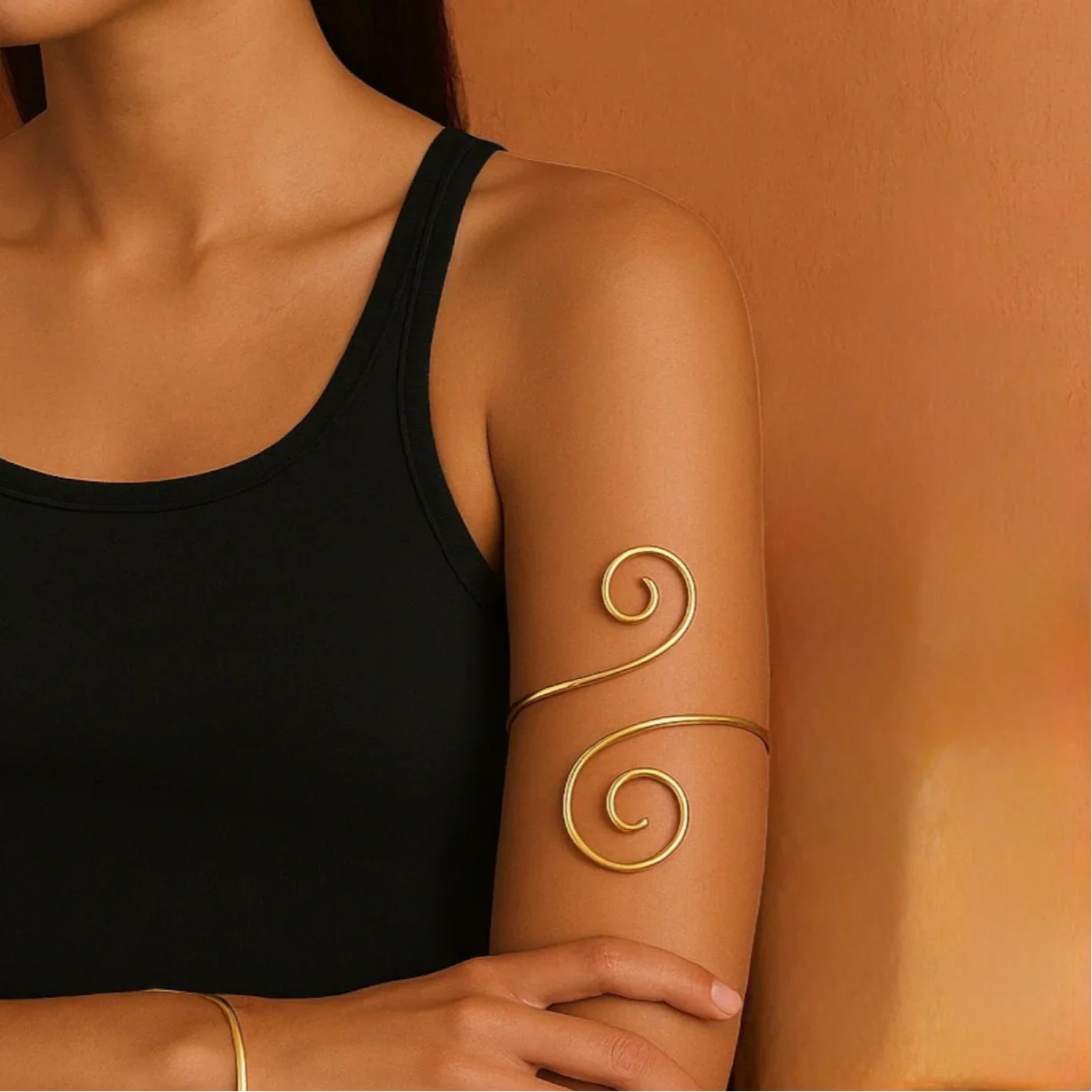 - Description: Meet Gbèdè — a playful spiral of brass that hugs your upper arm with effortless style. Light, eye-catching, and full of personality.