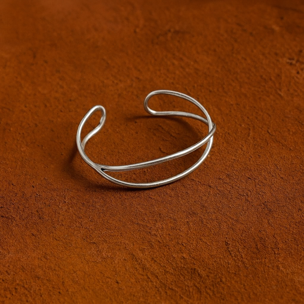 - Description: Inspired by the undulating flow of river currents, the Fala Cuff embodies movement and grace. Handcrafted in polished copper, its fluid design wraps around the wrist effortlessly. Lightweight yet striking, this piece adds a refined, modern touch to any look.