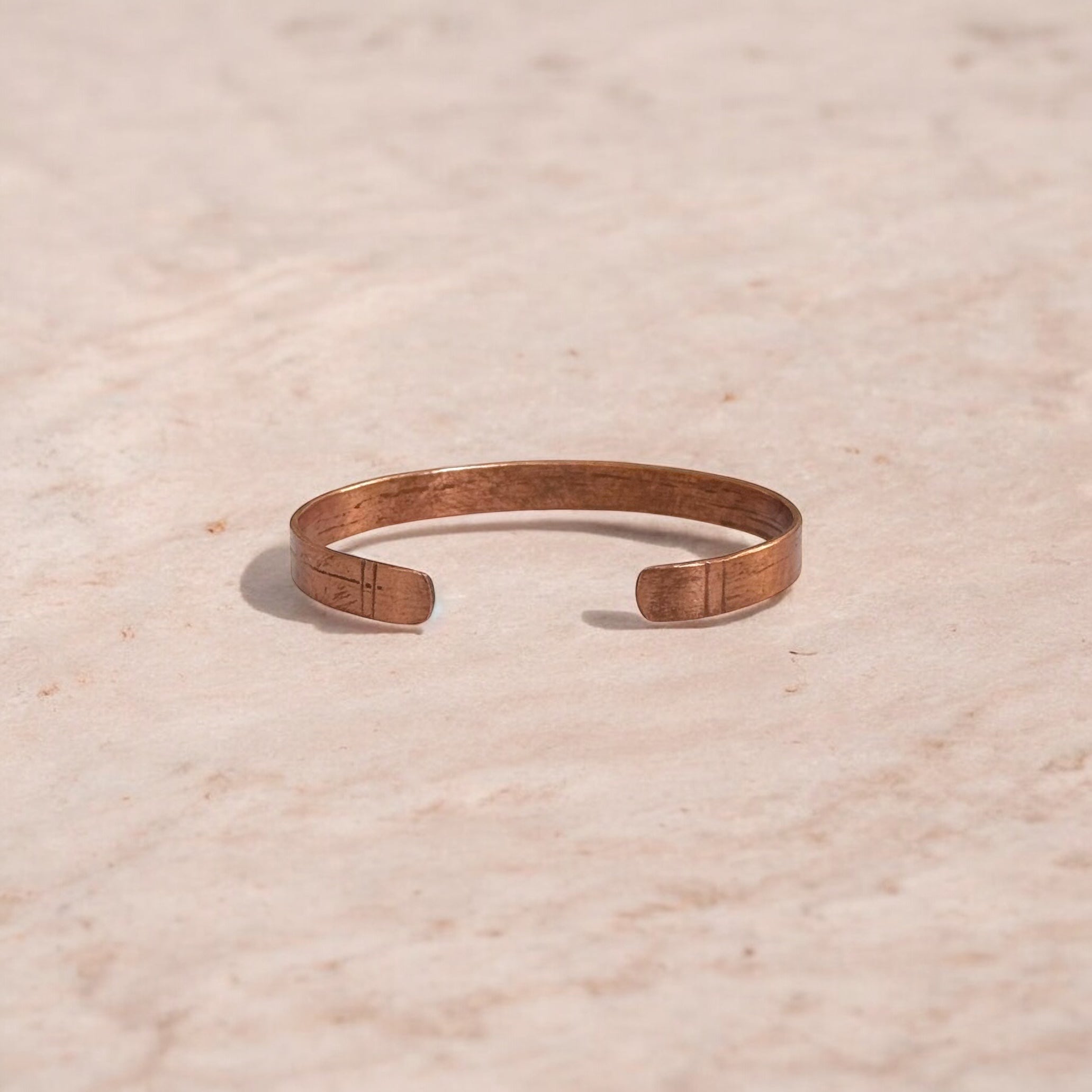 Product Description: A sleek and grounding cuff made of pure copper - perfect for everyday wear.