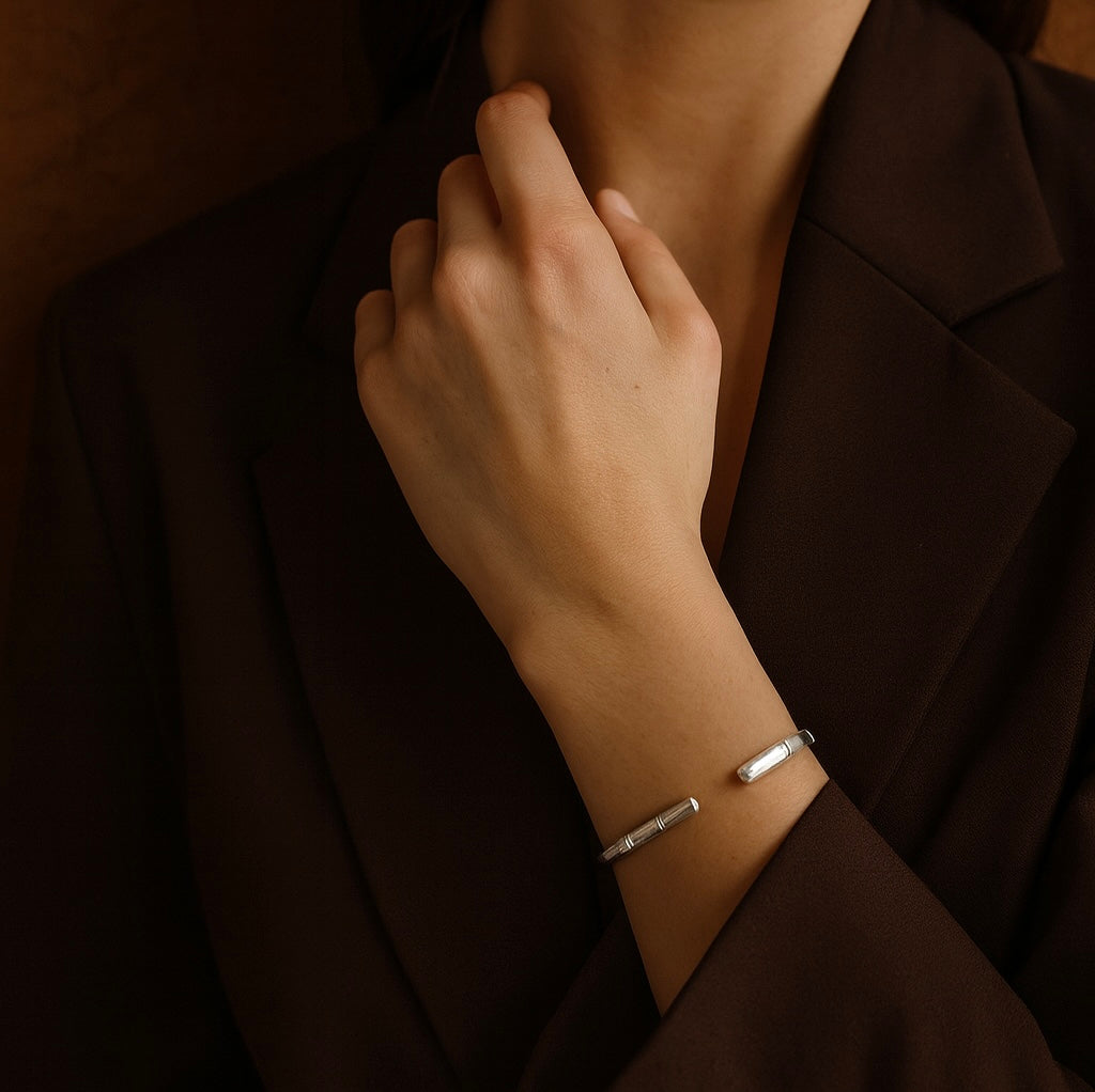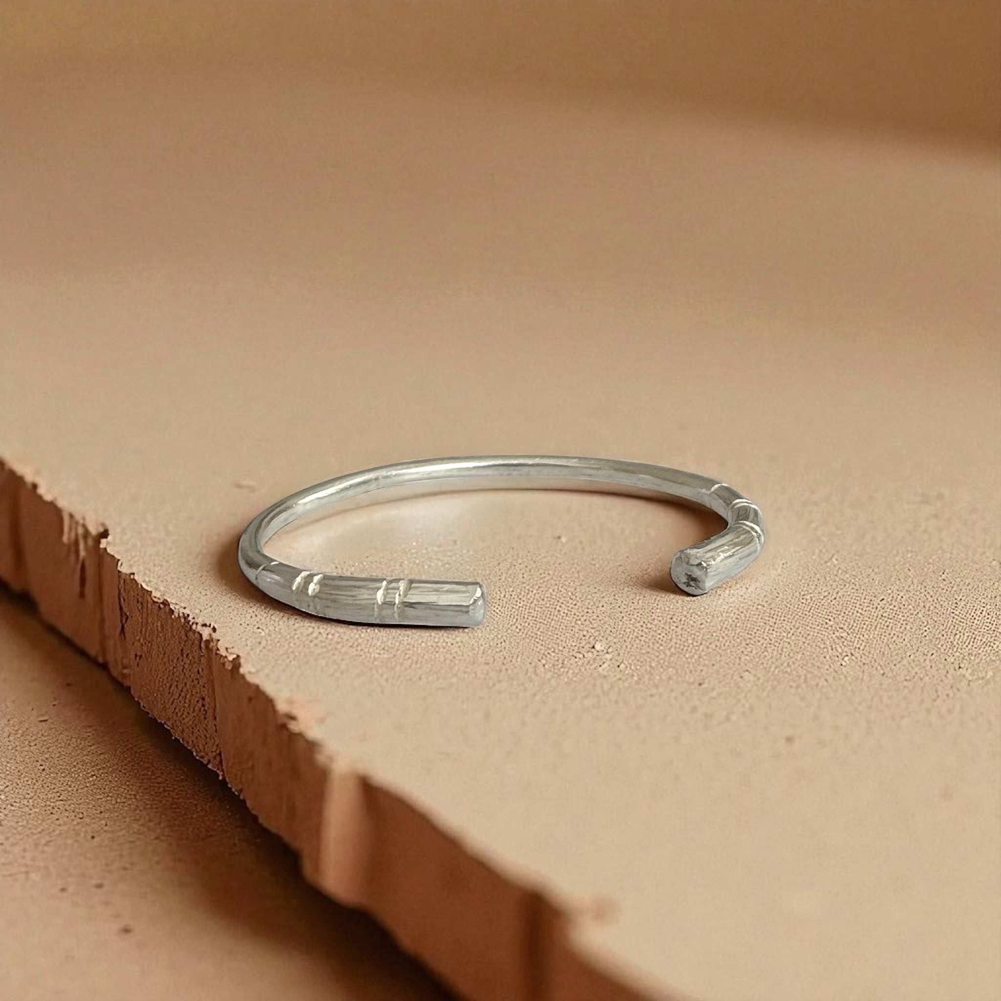 - Product Description: Slim open cuff with subtle engraved lines for a clean, modern finish. Lightweight and comfortable, perfect for everyday layering.