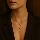 - Product Description: This necklace is a rigid choker. It features a fluid, organic design that mimics the effortless movement of water. The open-ended structure, with its subtle curves, creates a statement look that remains lightweight and comfortable.
