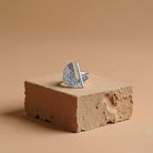 - Product Description: A geometric ring shaped in clean lines, with half-moon and bar elements meeting in quiet balance. A modern ode to light and shadow.