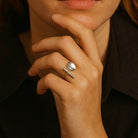 - Product Description: Sculpted like a falling drop and balanced with a minimal bar, this ring is an ode to contrast and calm. It merges softness with structure—perfect for those who love subtle statements.