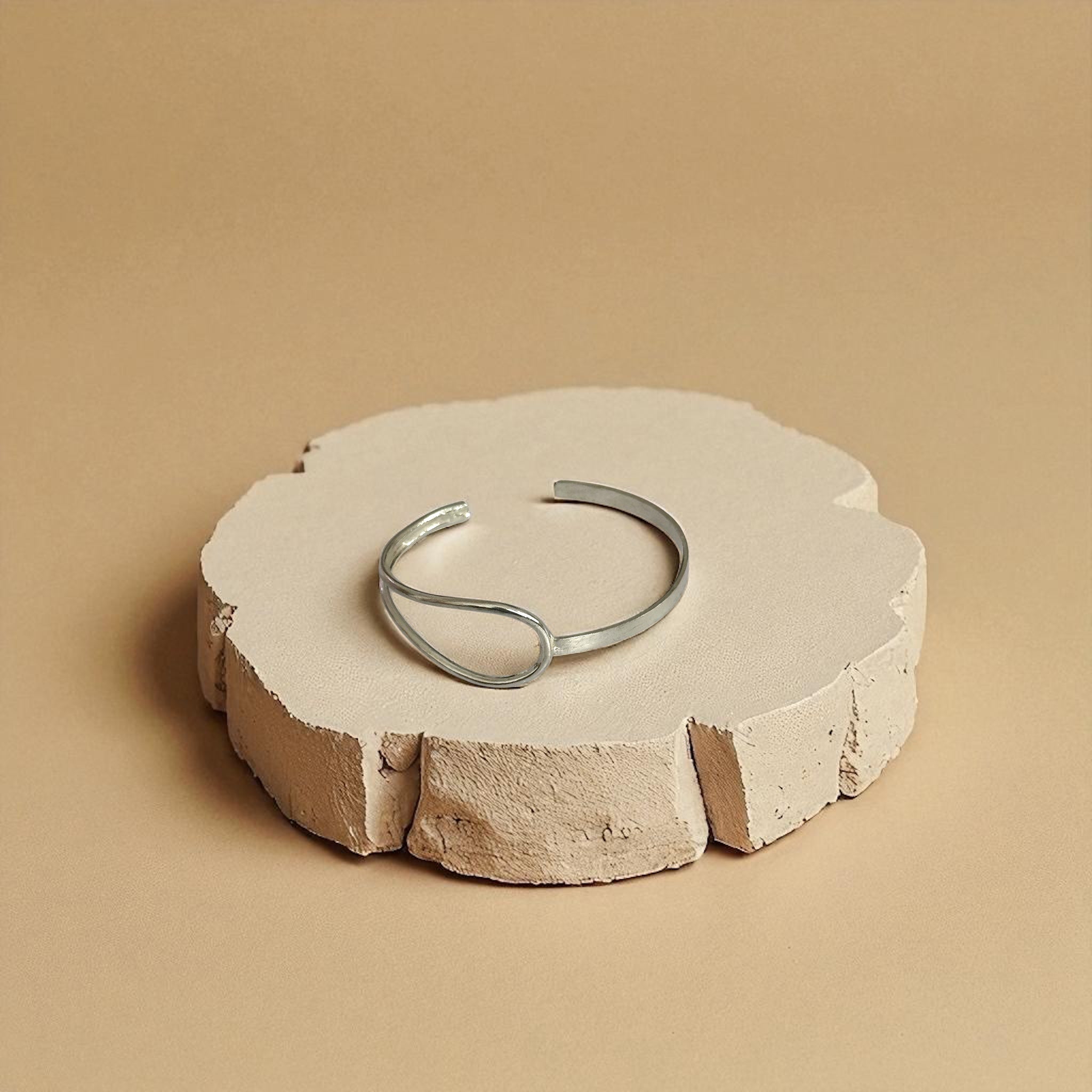 - Description du produit : Bracelet ouvert minimaliste avec boucle organique, conçu pour un usage quotidien. Léger et confortable, il s'adapte à tous les jours.
