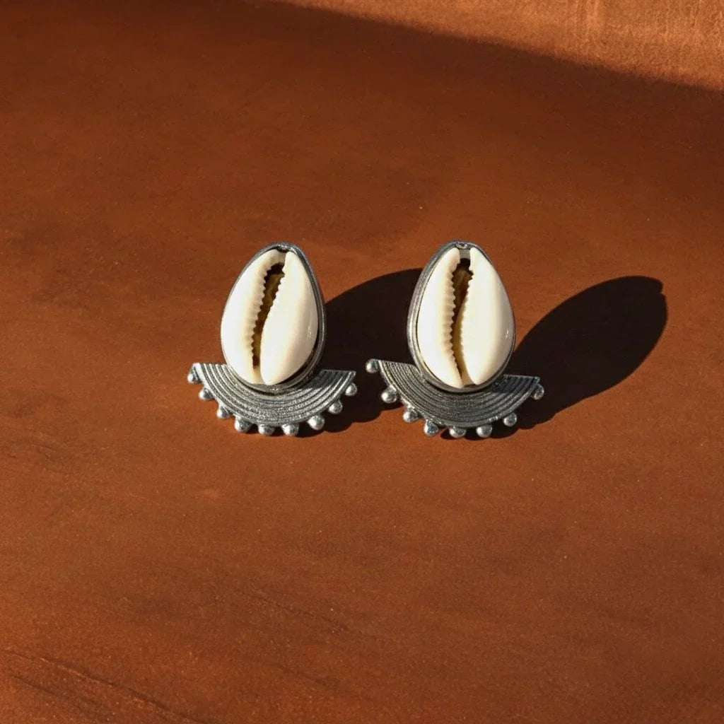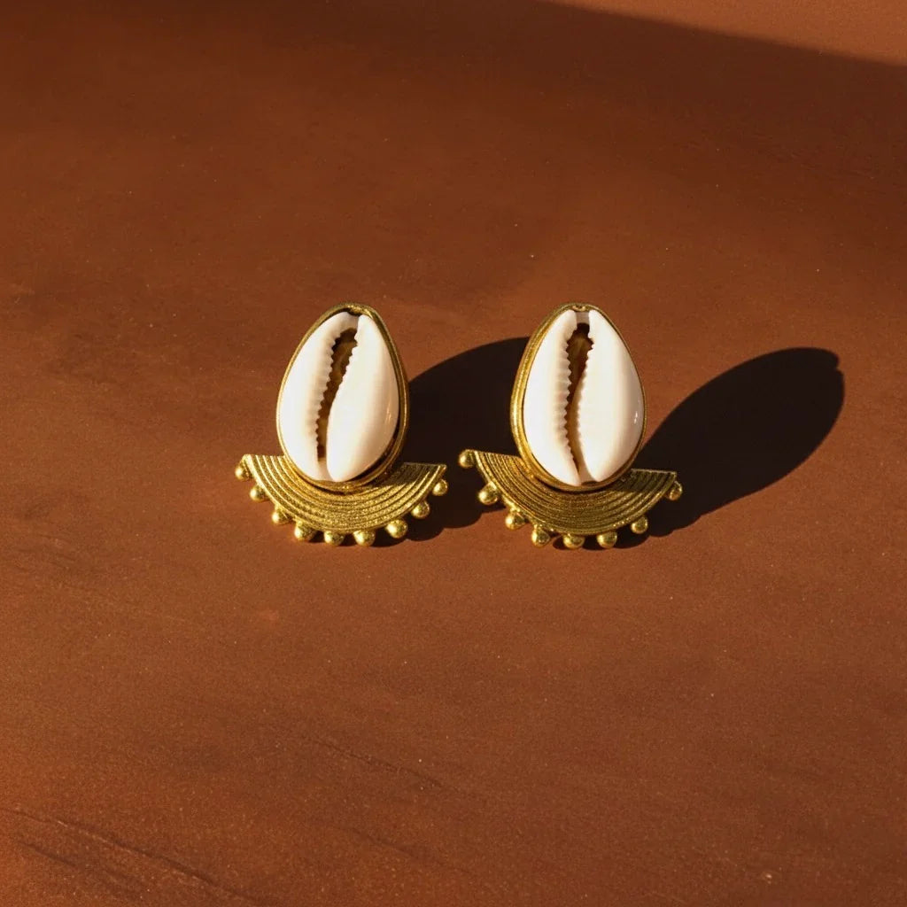 - Description du produit : Audacieuses et compactes, ces boucles d'oreilles associent des coquillages cauris polis à un éventail en laiton texturé. Un hommage à la protection spirituelle et à la fierté ancestrale, prêt pour les oreilles modernes.