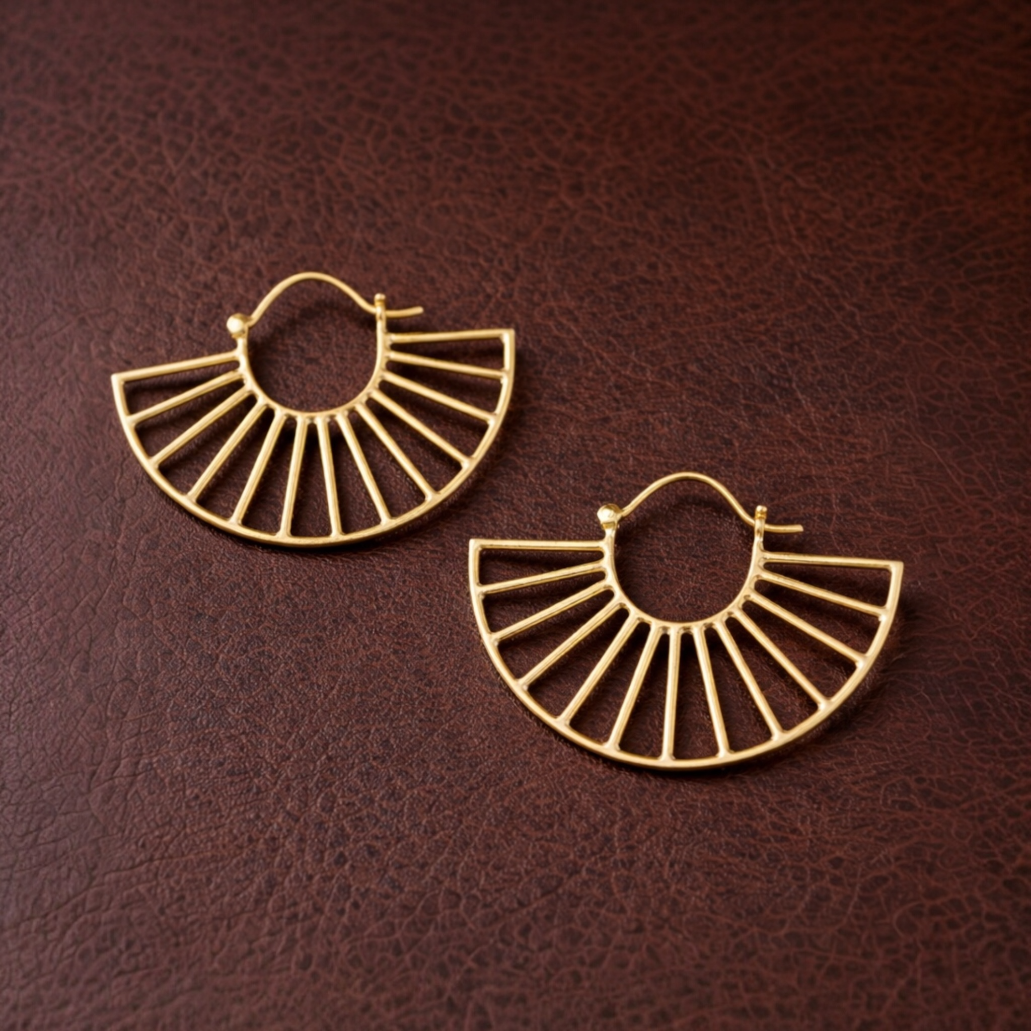- Description du produit : Inspirées de l’éventail traditionnel d’Afrique de l’Ouest, les boucles d’oreilles Fané réinterprètent sa silhouette semi-circulaire tressée en laiton sculpté. Leur forme ouverte en demi-soleil reflète le flux d’air et la lumière, traduisant un savoir-faire culturel en une création afro-scandinave raffinée.
