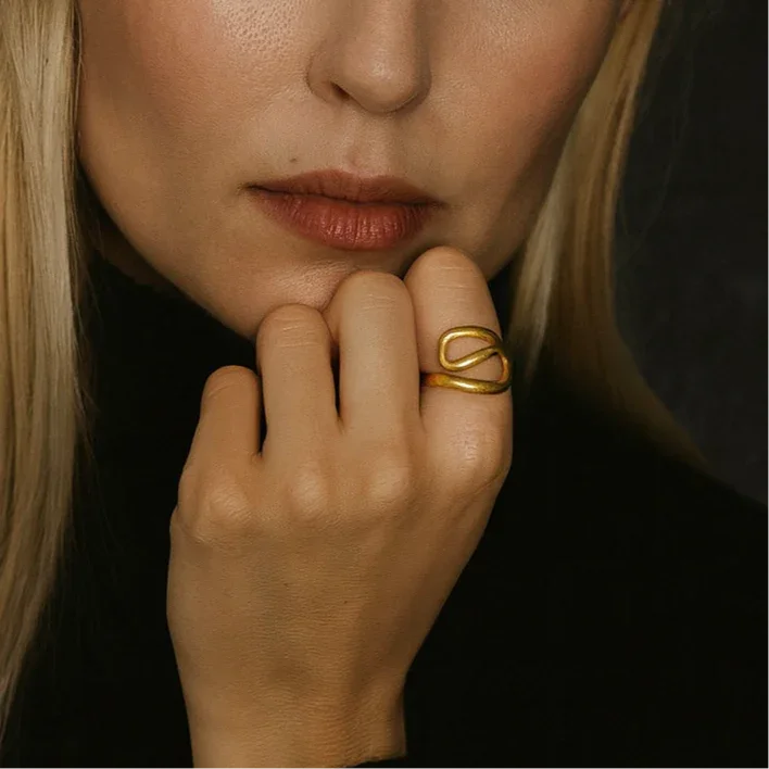 - Description : Cette bague en cuivre présente une courbe douce et fluide qui épouse élégamment votre doigt. Légère et ajustable, Domi apporte une touche d'originalité à votre style quotidien.