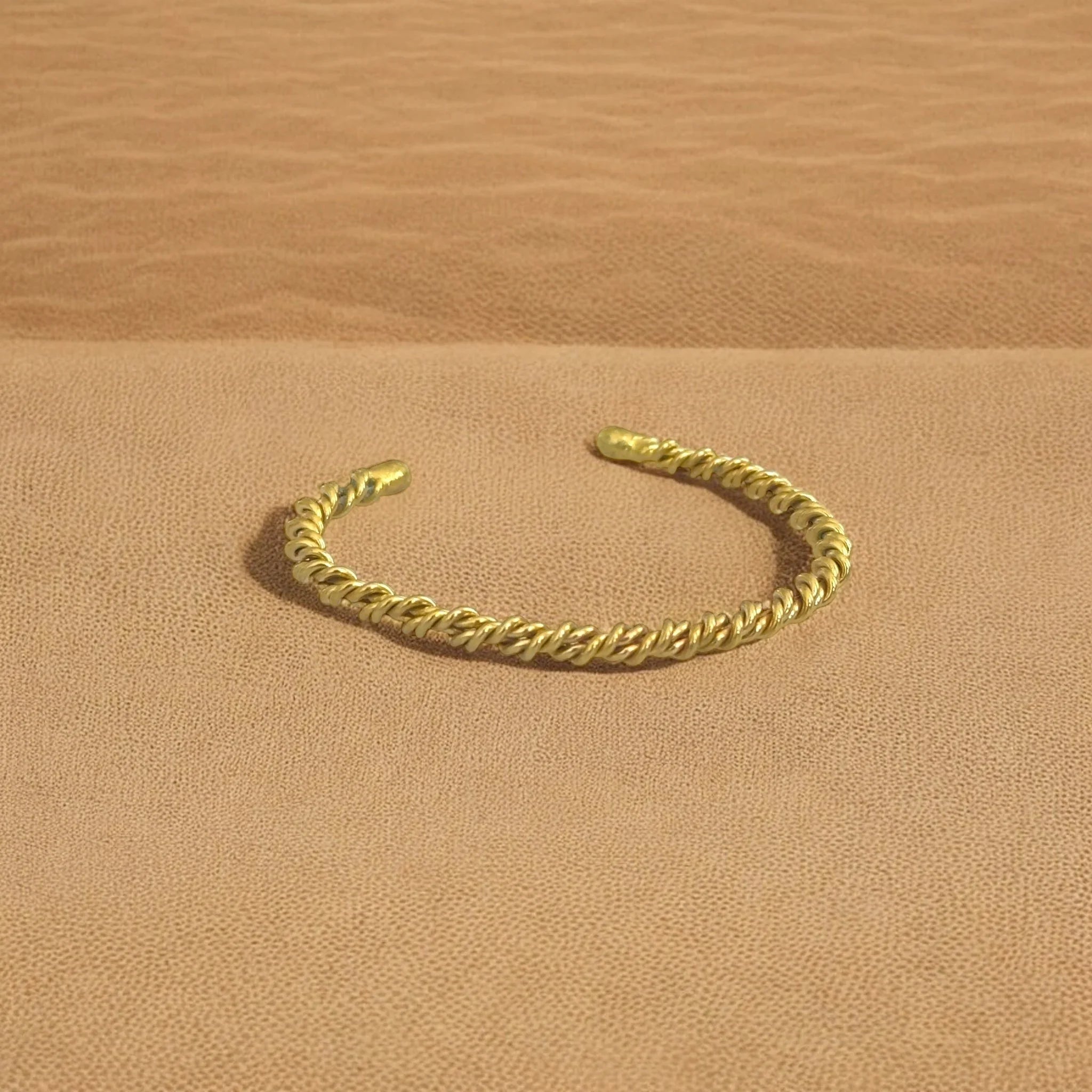 - Produktbeskrivelse : Dette tvinnede messingarmbåndet gir tekstur og bevegelse til antrekket ditt – enkelt, elegant og fullt av karakter. Lett og tidløst for hverdagsbruk.