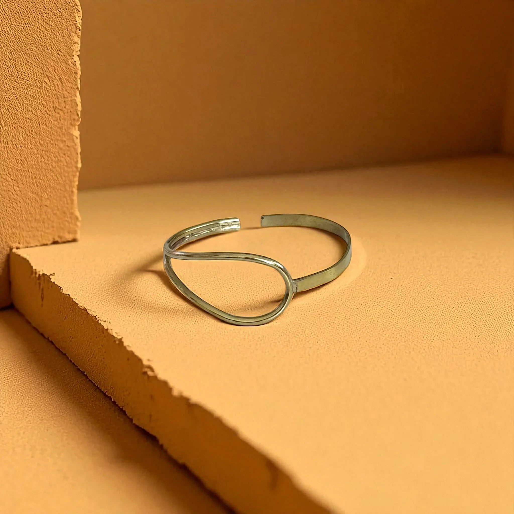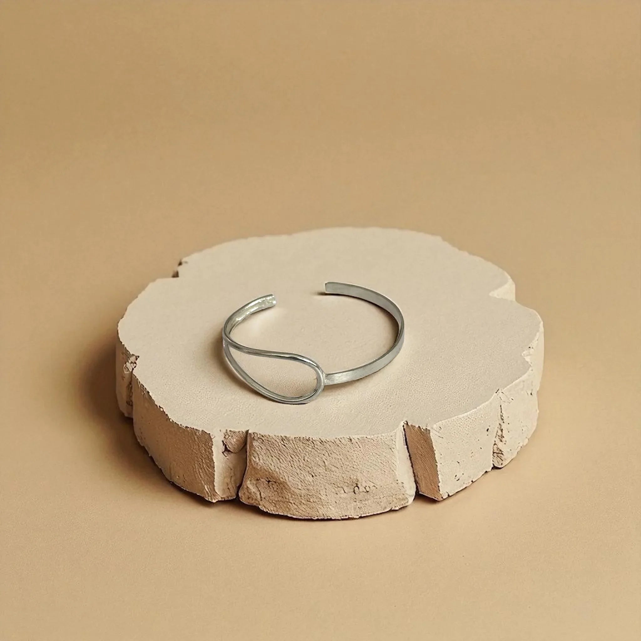 - Produktbeskrivelse: Minimalistisk åpen mansjett med en organisk løkkedetalj, designet for hverdagsbruk. Lett og komfortabel for bruk hele dagen.