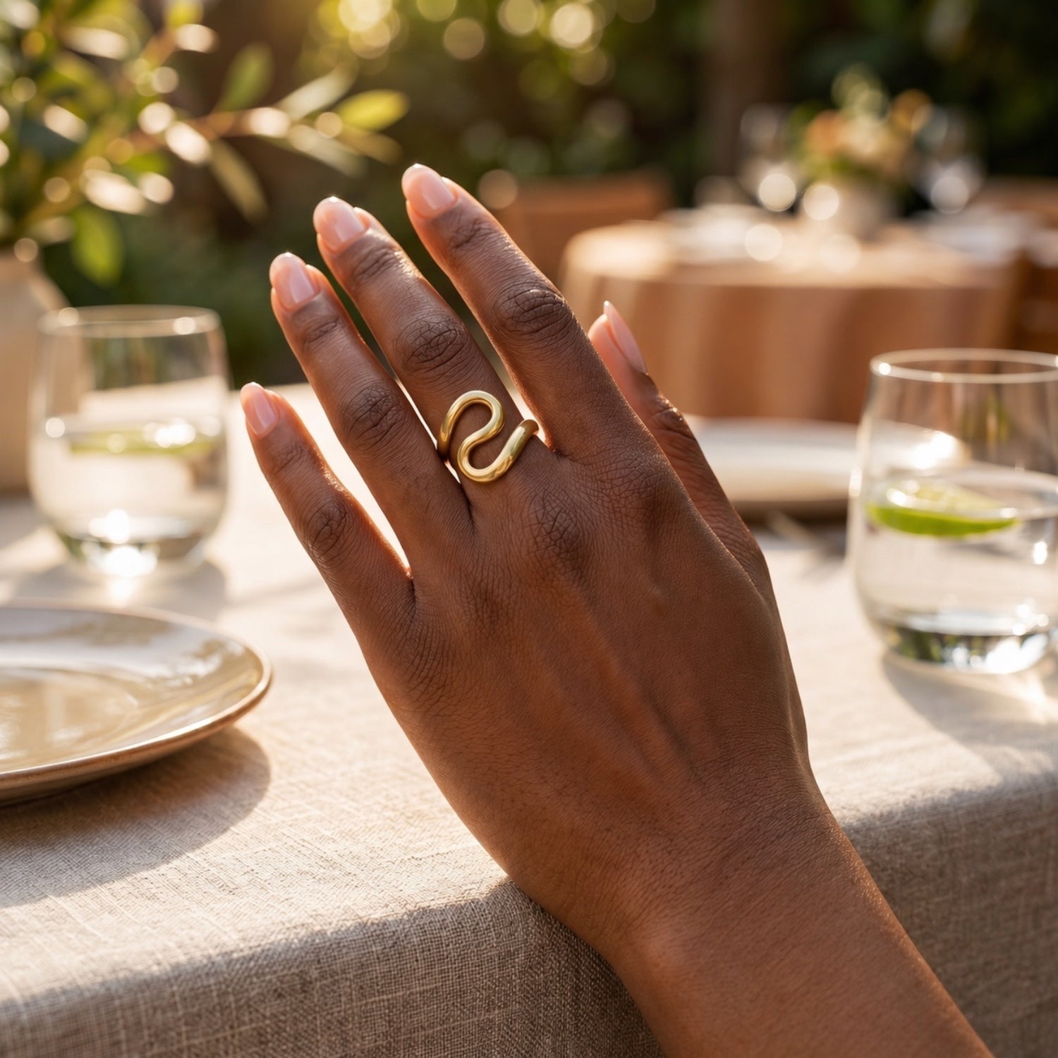 - Collector's note: Domi-ringen er en hyllest til organisk bevegelse. Dens håndbøyde silhuett etterligner de uanstrengte kurvene som finnes i naturen, gjenskapt med de rene, bevisste linjene i skandinavisk minimalisme.