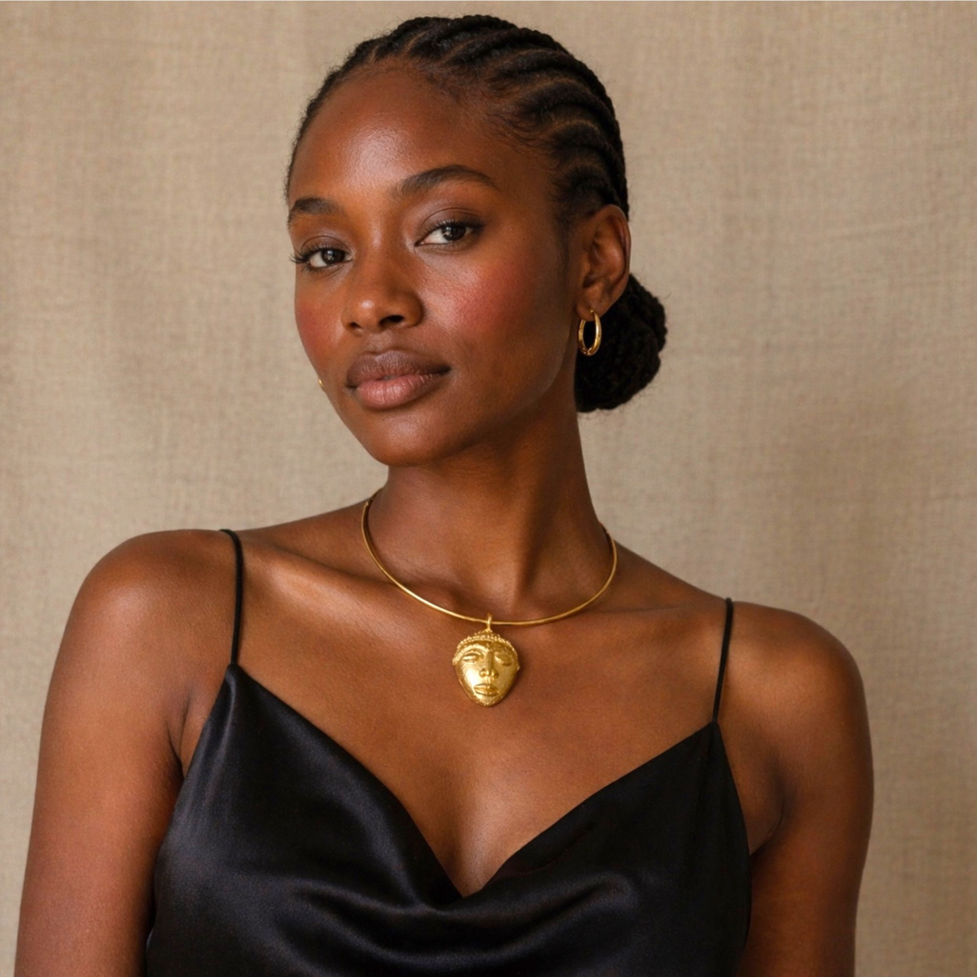 Handle afrikanske halskjeder designet for lagvis eller frittstående bruk. Denne kolleksjonen inkluderer håndlagde messinghalskjeder, chokere og anhengstiler laget av dyktige håndverkere.