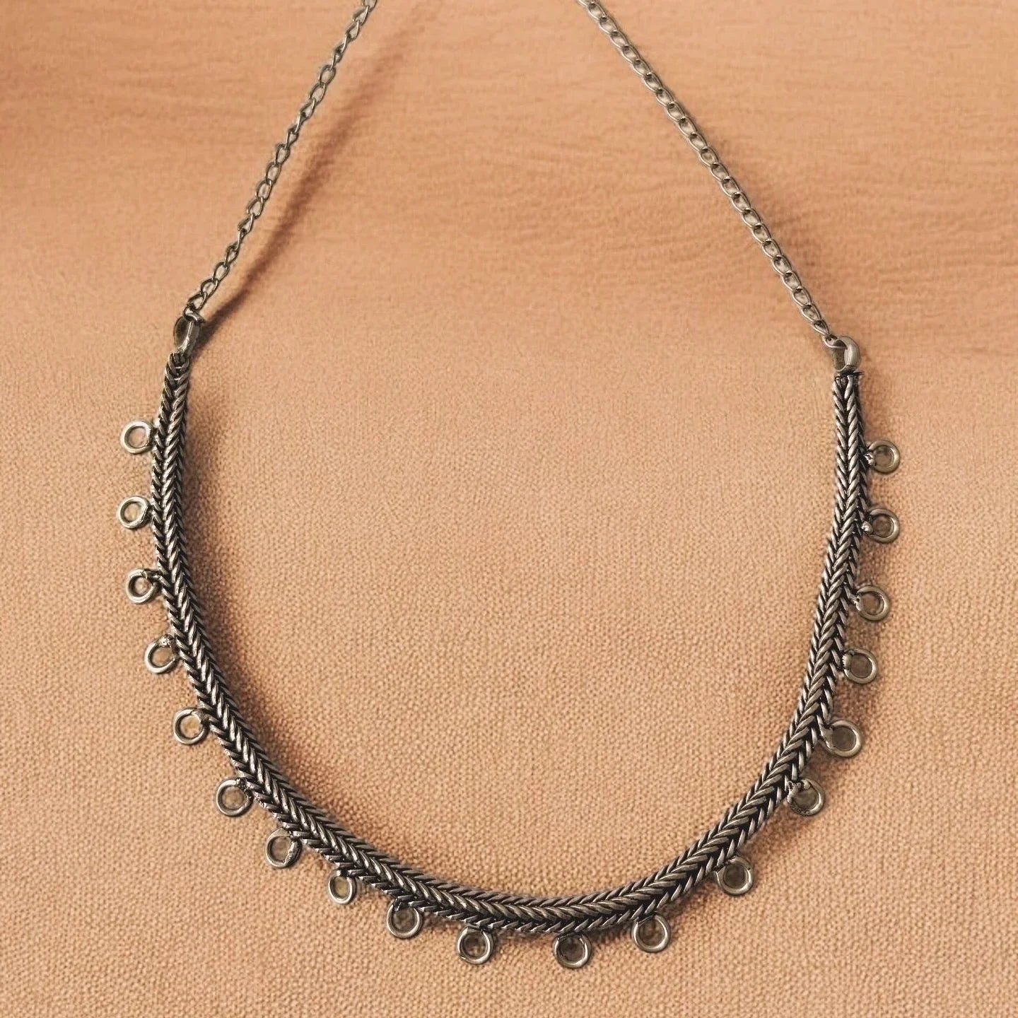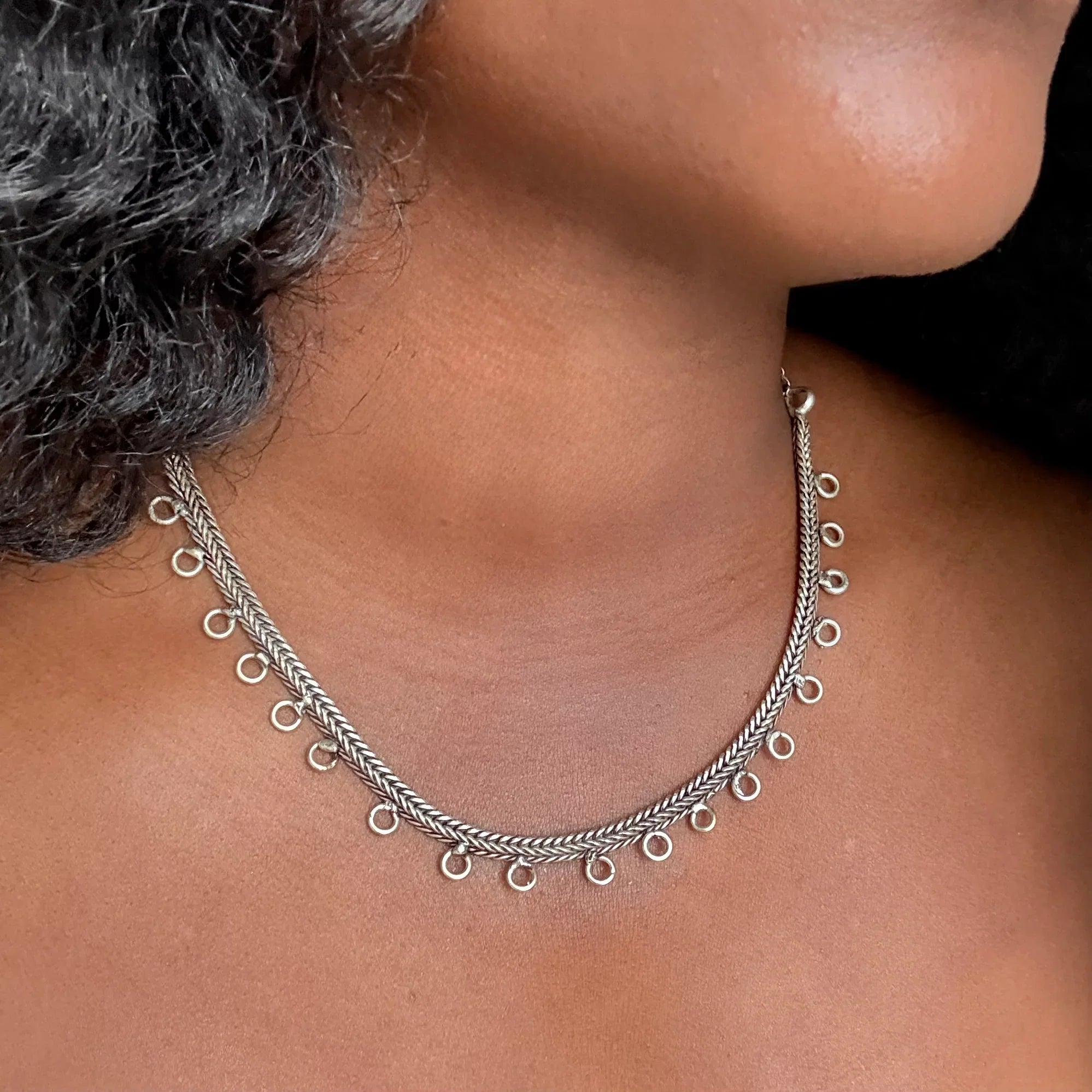 - Beskrivelse : En rytmisk dans av løkker omgir dette fint flettede halskjedet, og blander styrke og mykhet i hver minste detalj. Dette kjedet er lett og komfortabelt, og gir et uanstrengt statement til antrekket ditt.