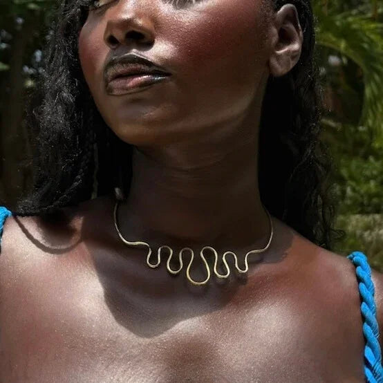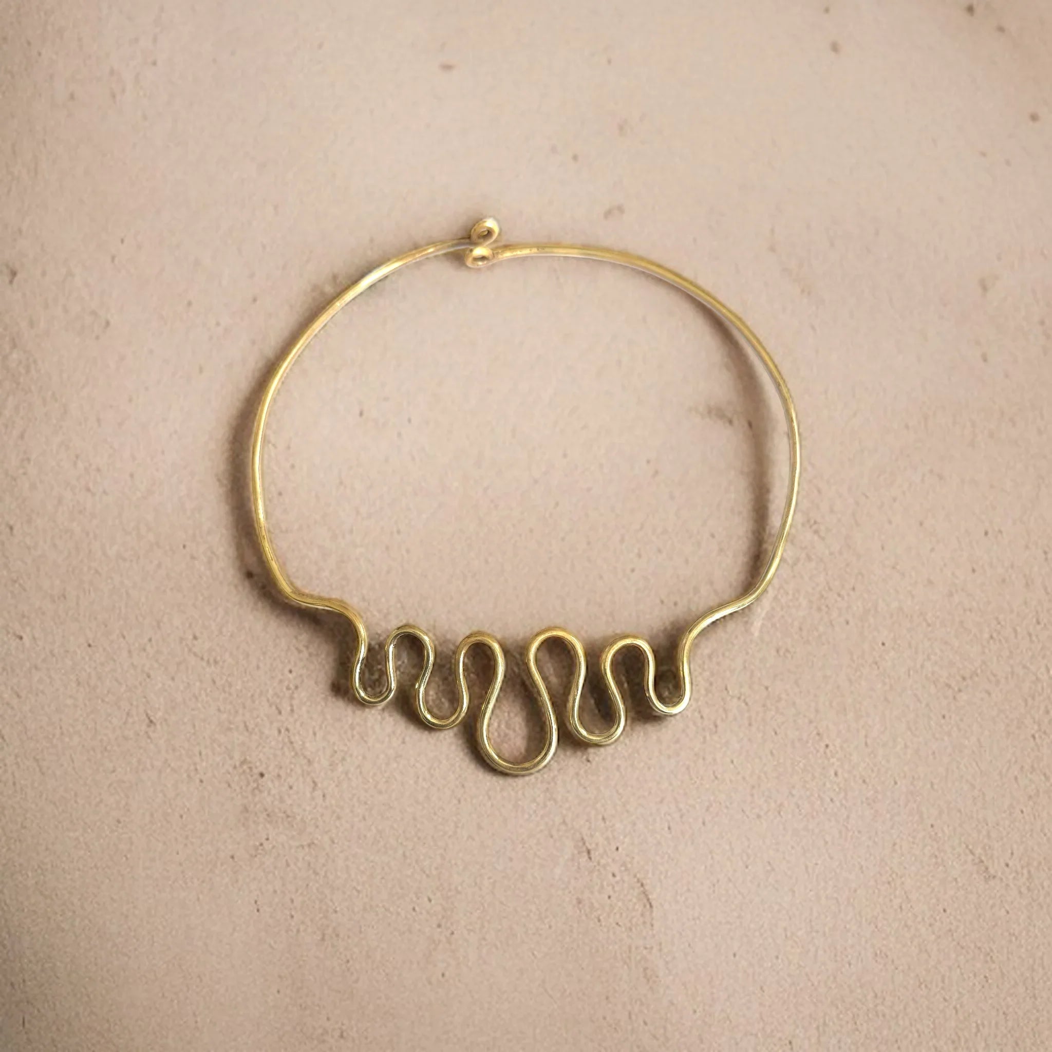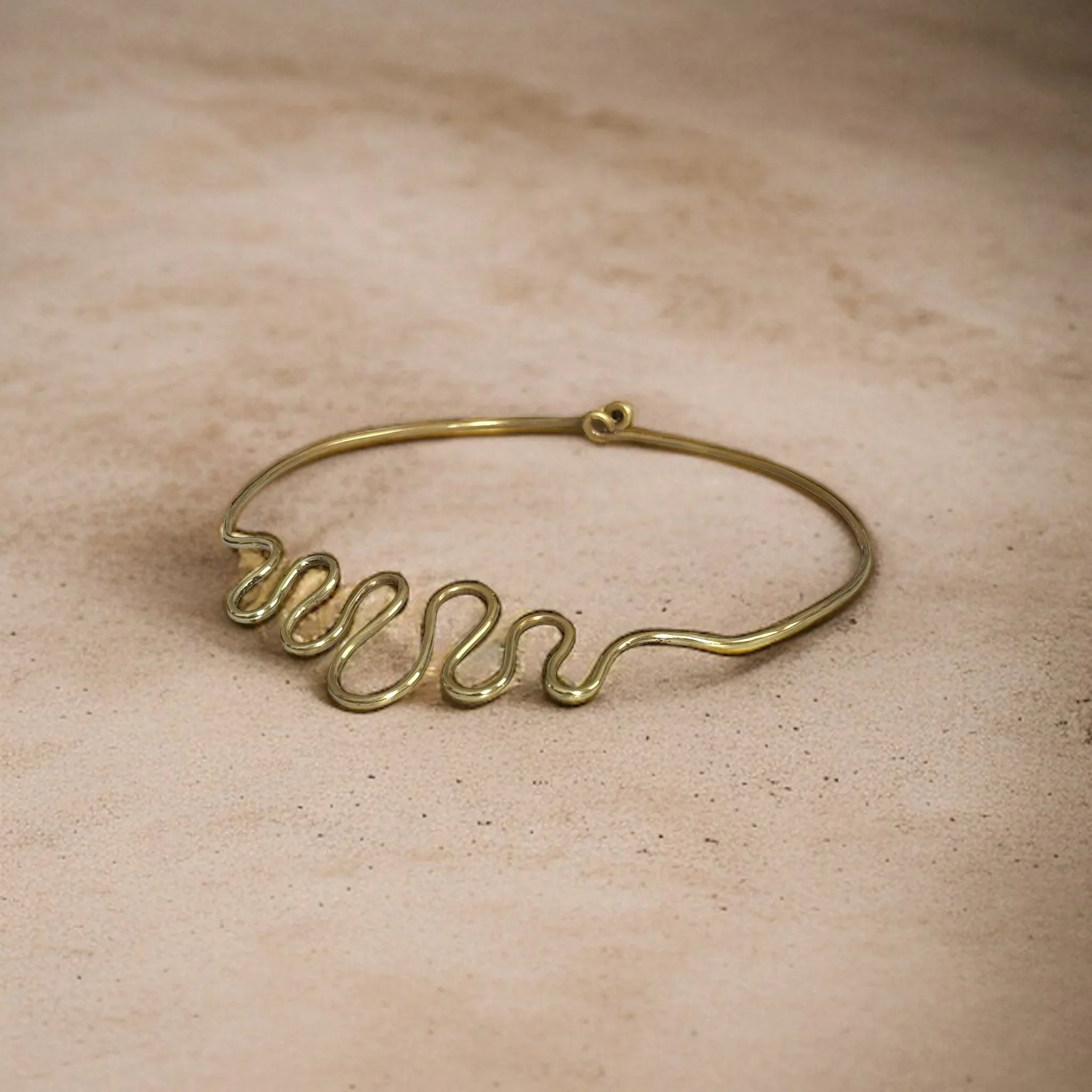 - Produktbeskrivelse : Messingarmbånd med et flytende bølgedesign, inspirert av vannets bevegelse.