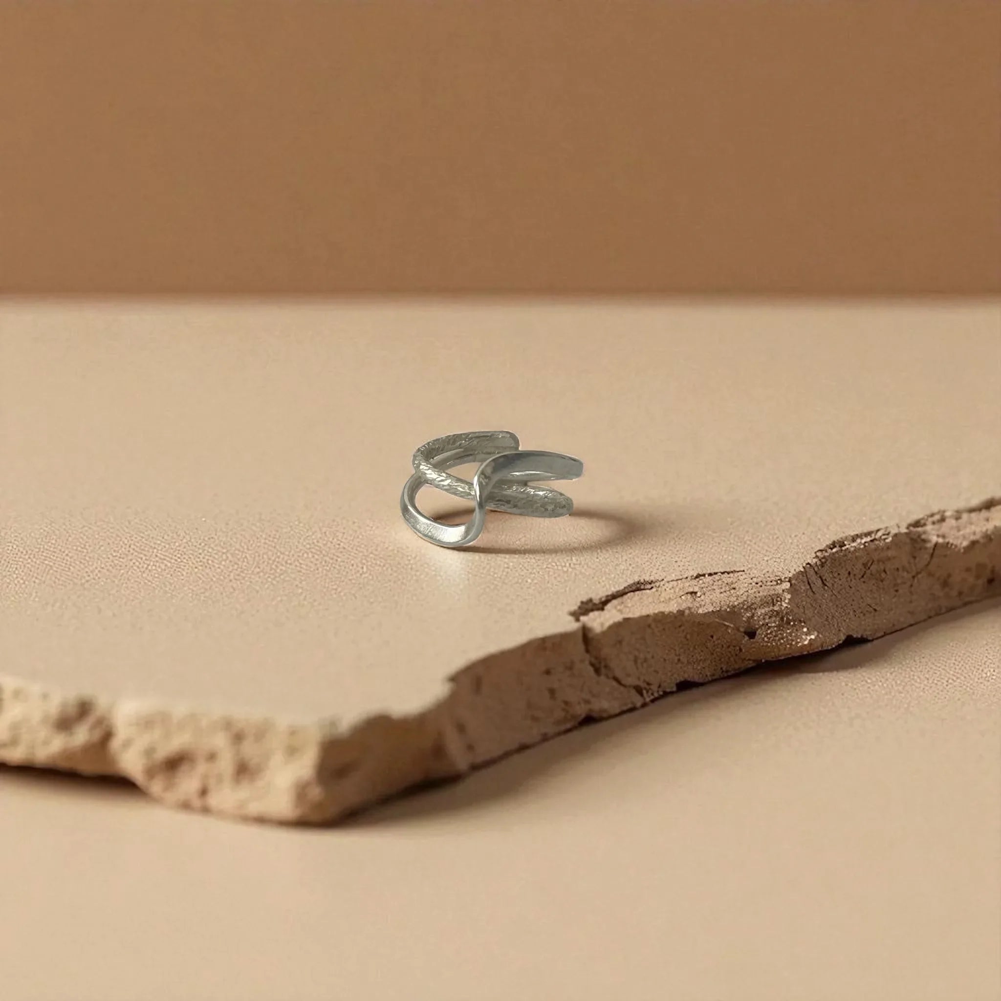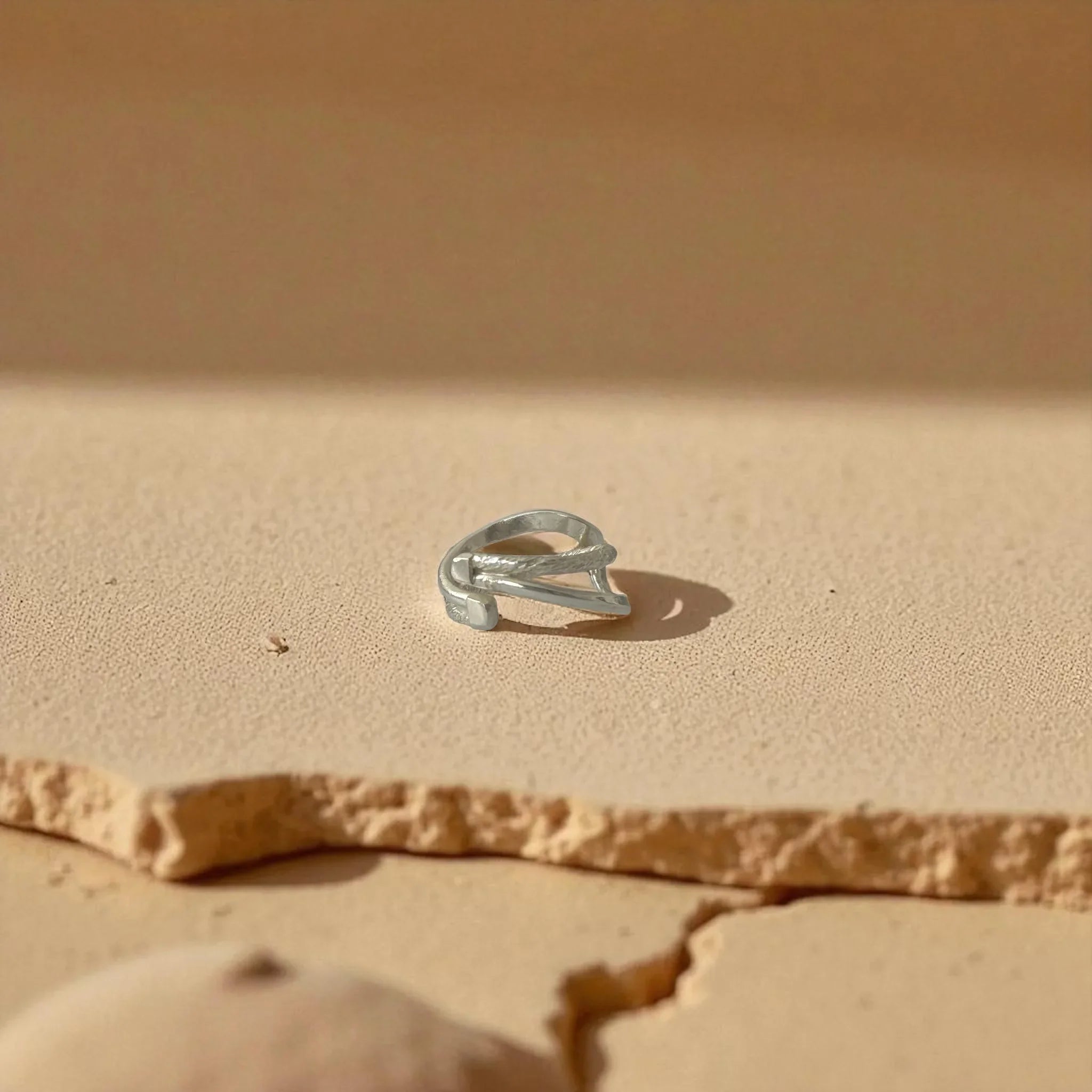 - Produktbeskrivelse : En skulpturell ring som symboliserer enhet, der to flytende messingbånd møtes og flyter sammen som én. Den doble finishen – matt og polert – gir en subtil kontrast for et dristig, men minimalistisk utseende.