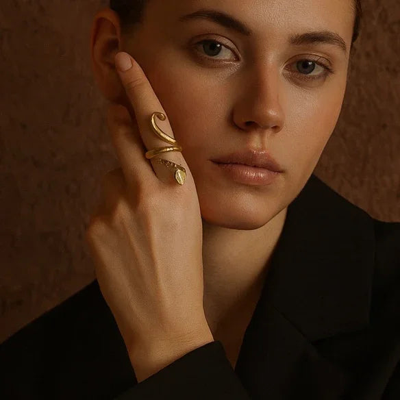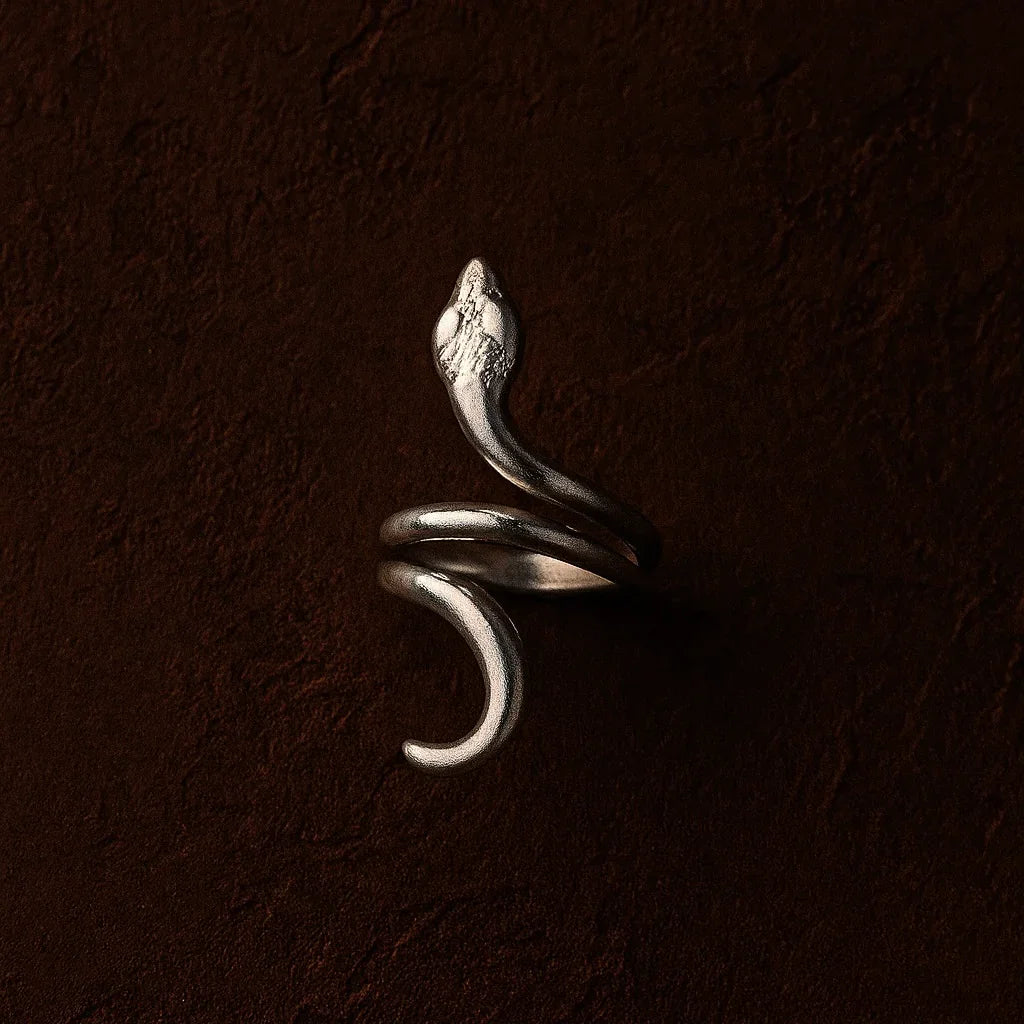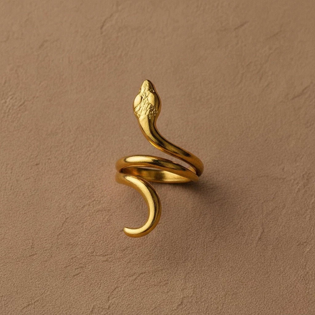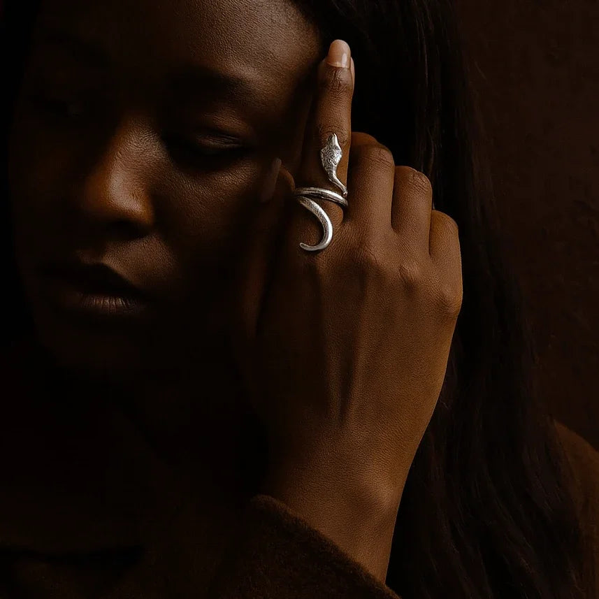 - Produktbeskrivelse : Inspirert av de hellige slangene i Ouidah, slynger denne håndlagde kobberringen seg elegant rundt fingeren din. Dens flytende design fanger essensen av fornyelse og visdom, noe som gjør den til et dristig blikkfang.