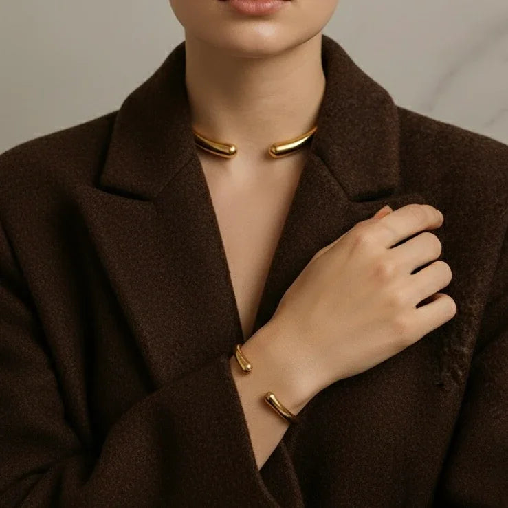 - Product Description: This set brings together necklace, bracelet, and ring, designed in harmony for a timeless minimalist look. Each piece is lightweight and comfortable to wear, made to elevate your style.