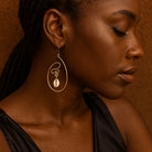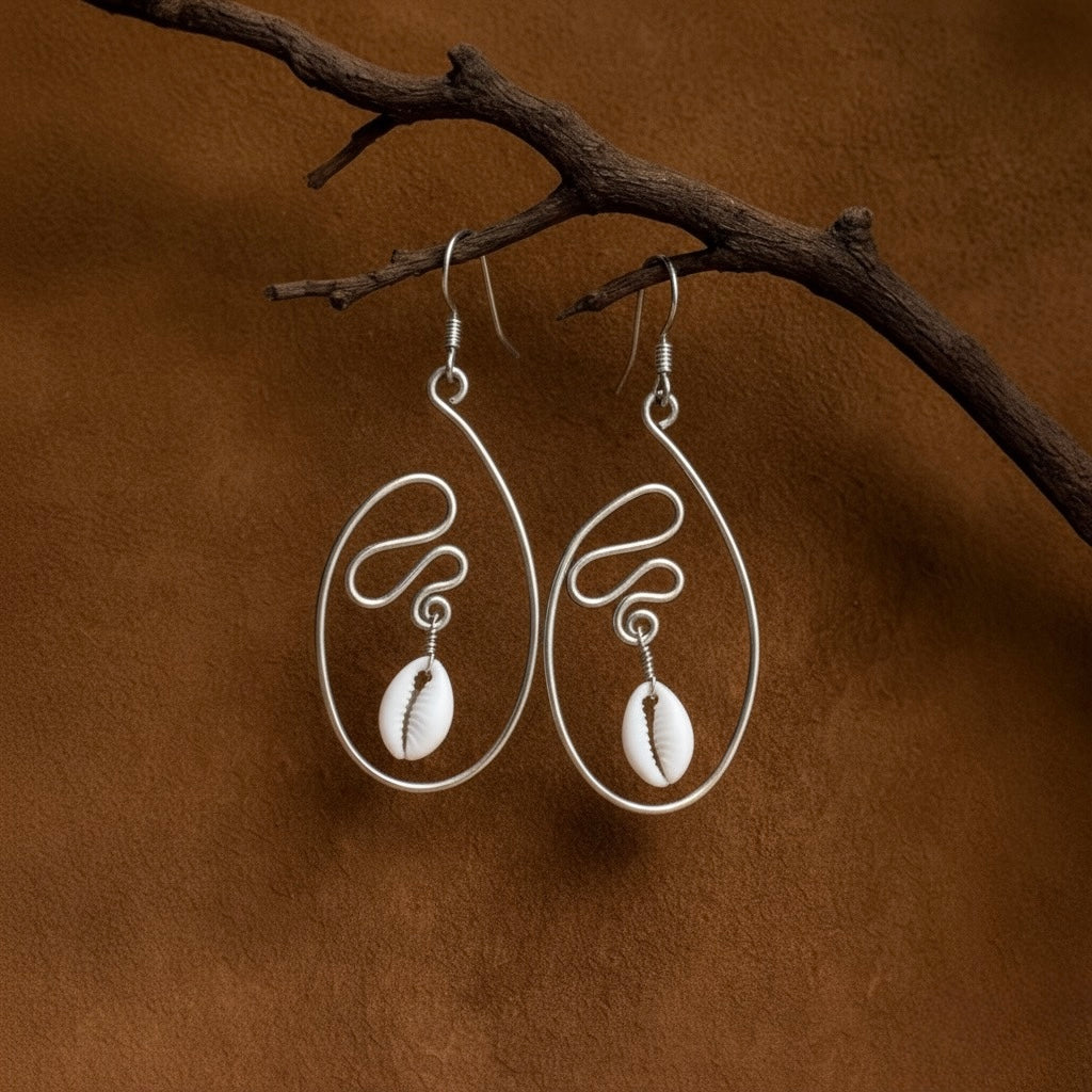 • Product Description: Brass earrings shaped in flowing curves, holding cowrie shells as a symbol of unity and heritage. Lightweight and comfortable, they bring cultural meaning into a modern form.