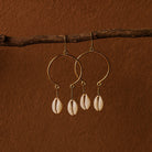 - Product Description: These bold brass hoops celebrate the power and symbolism of the cowrie shell—once used as currency and still seen as a symbol of abundance across West Africa. Each earring features two natural cowrie shells suspended from a polished brass hoop.